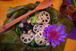 Lotus in Moonlight's well-prepared honest vegetable and tofu dishes mark a nice departure from the imitation meat offerings that previously defined vegetarian Chinese cuisine in the city. Fake chicken and fish, engineered from combinations of soy and taro, are still available here, but with less oil and more flavor than in other meat-free restaurants. Large front windows and skylights brighten the modern blue and yellow interior, suffused with an atmosphere of healthiness. Alcohol is banned, but the menu offers a long list of compelling and colorful herb teas, served in glass pots so you can watch the flowers steep.In Dong Zhi Men Wai area (just outside Second Ring Road), Chaoyang Northeast. Reservation Needed.